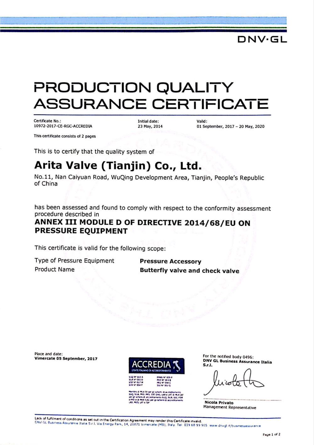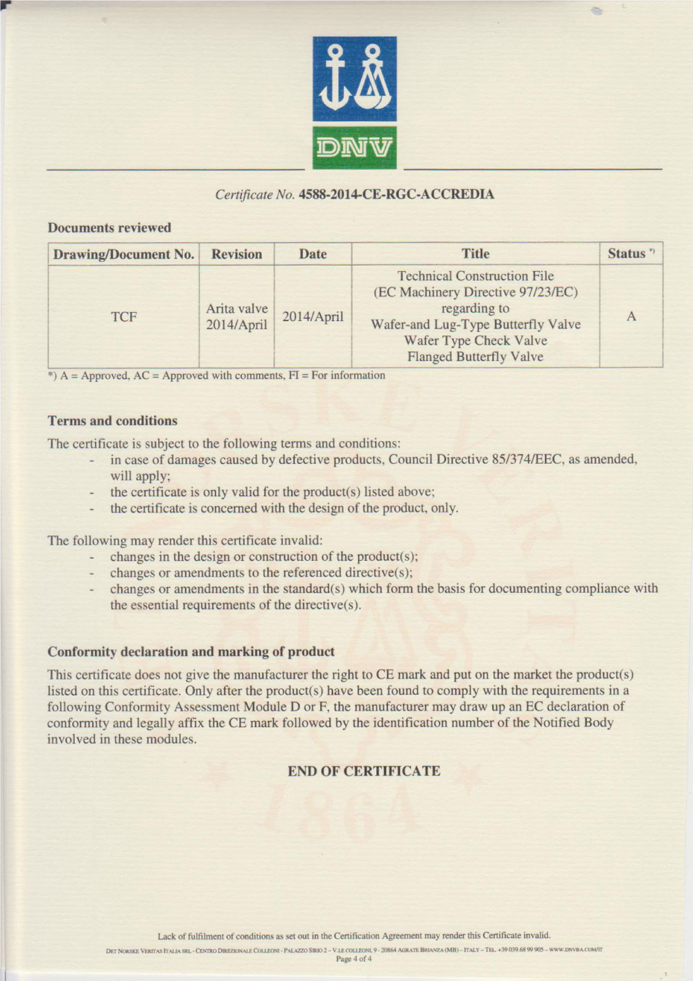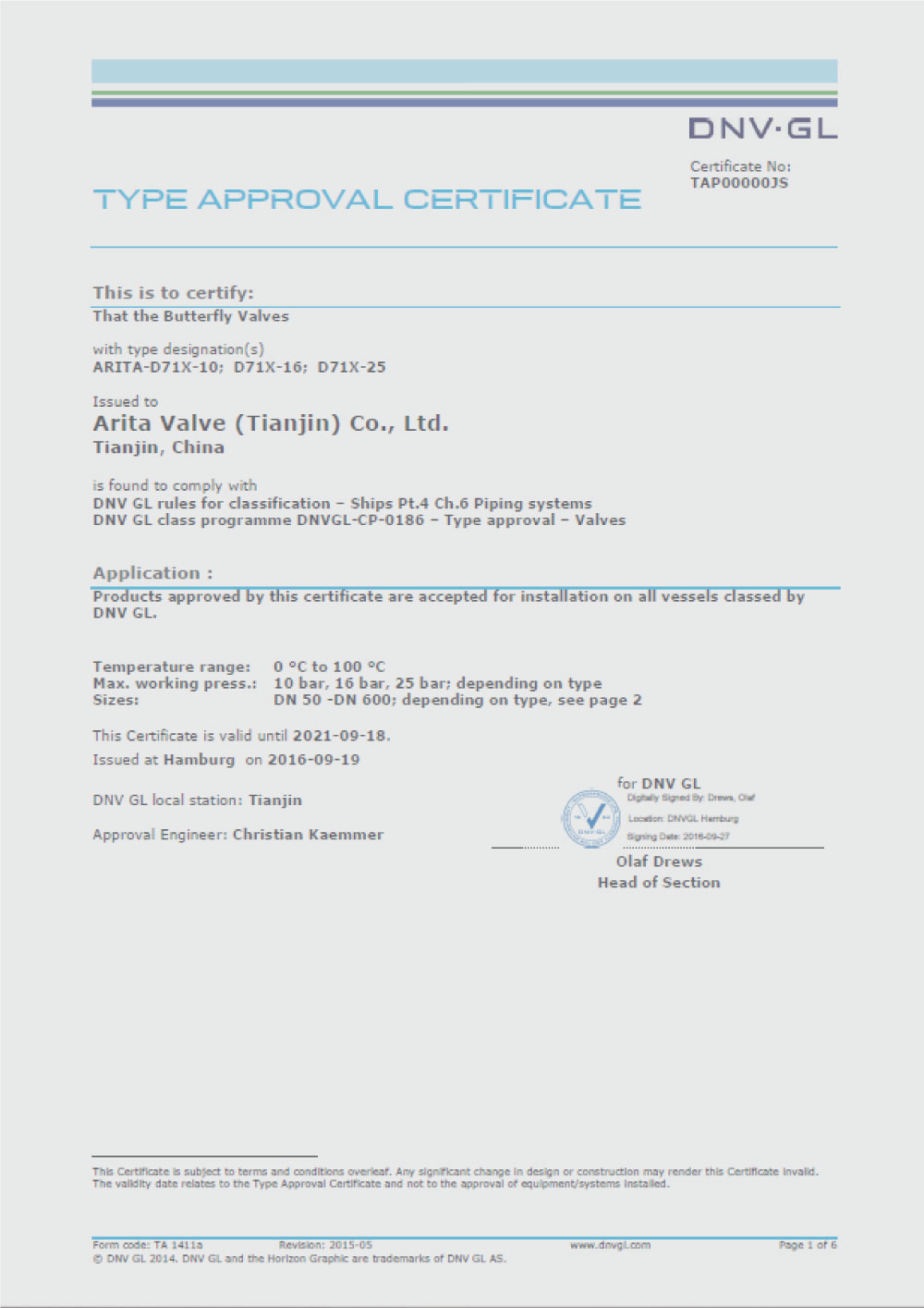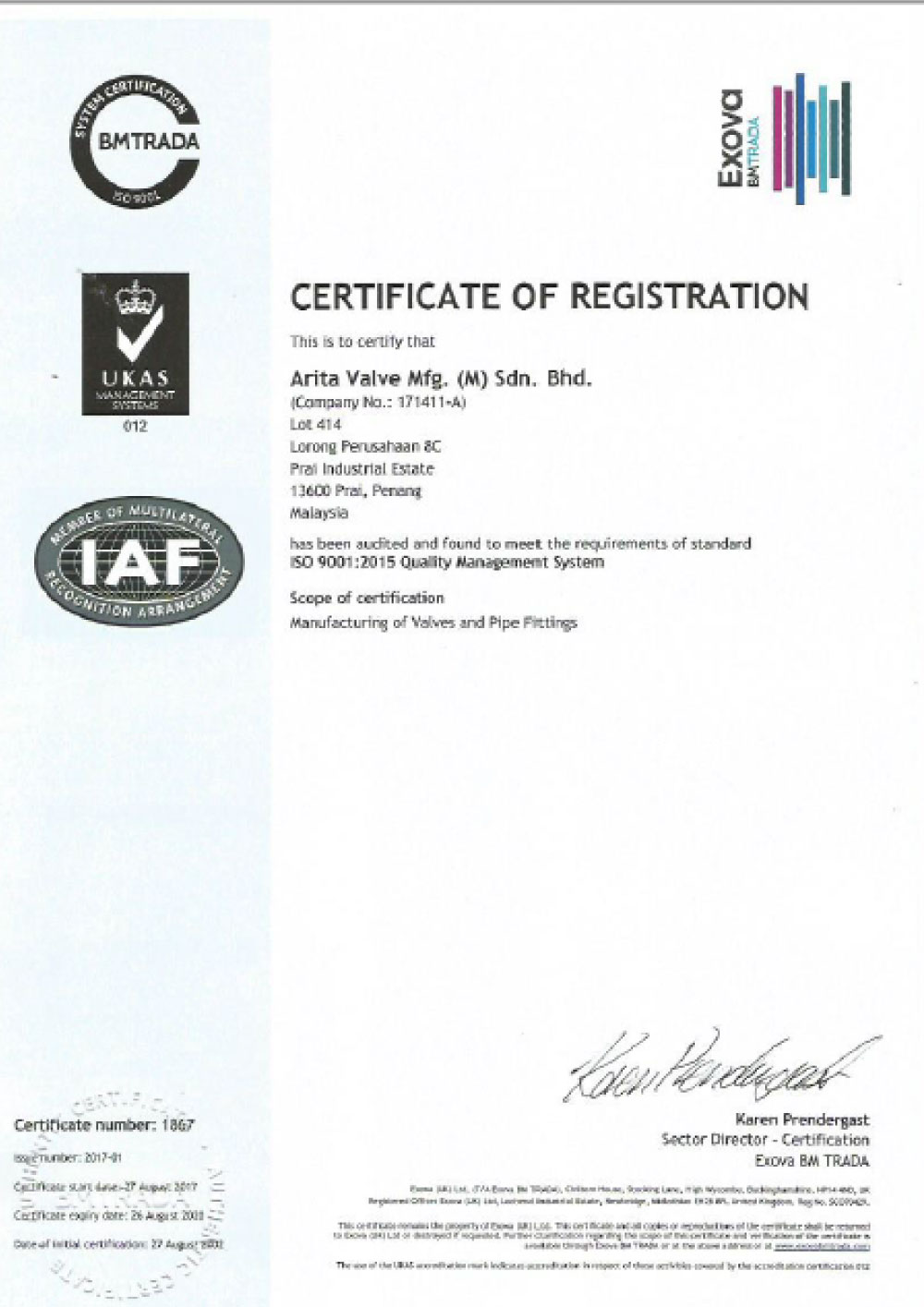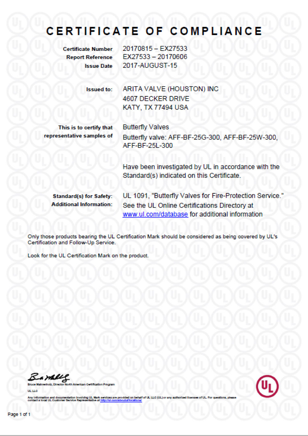Arita UL Certificates for Butterfly Valves
