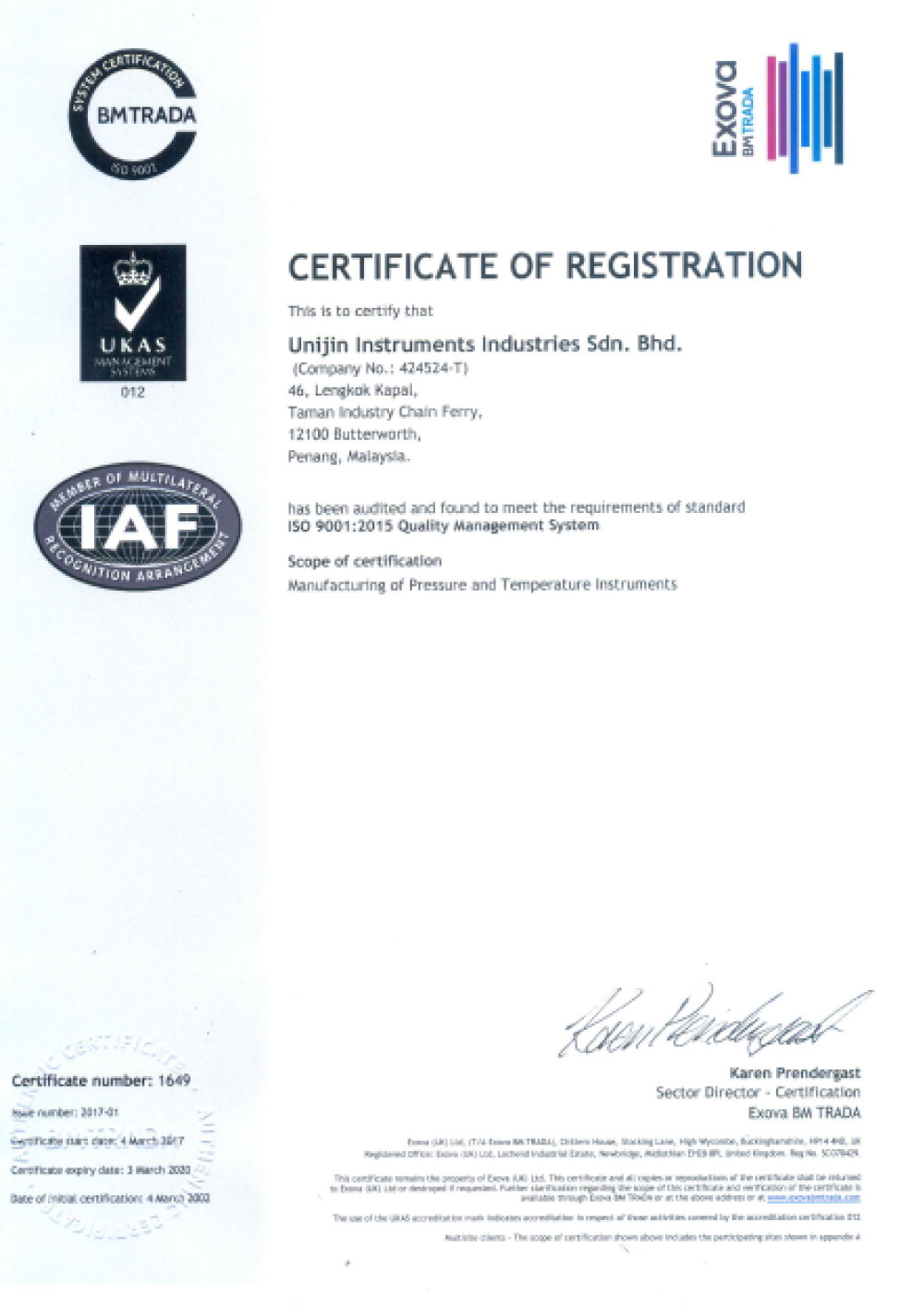 ISO 9001 2015 Management System Certificate