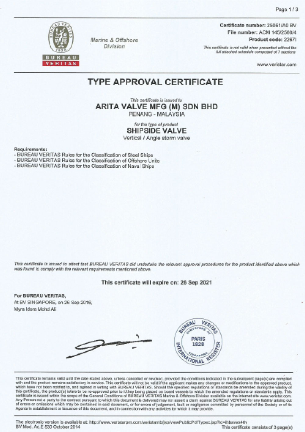 Bureau Veritas Certificate